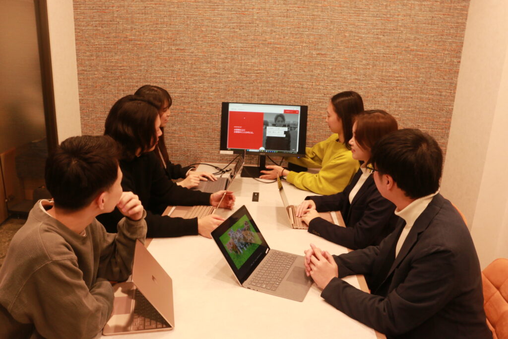 大きい画面で作業が捗ります。テレカンブースに加えて会議室は4人部屋と6人部屋があるため、周囲を気にすることなく、チームでの会議も一人でのオンライン会議への参加も可能です!